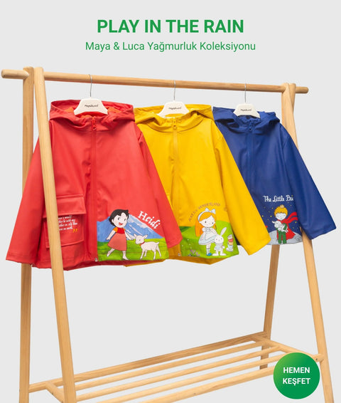 Küçük Prens Baskılı Kauçuk Su Geçirmez Pamuk Astarlı Erkek Çocuk Yağmurluk