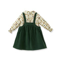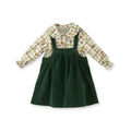 Yeşil Kadife Jile ve Desenli Gömlek Kız Çocuk Takım