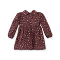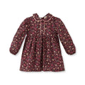 Çiçek Desenli Kadife Biyeli Bordo Pamuk Kız Çocuk Elbise