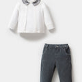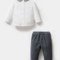 Ekose Yaka Detaylı Gri Pamuk Erkek Bebek İkili Takım