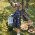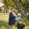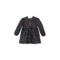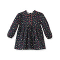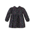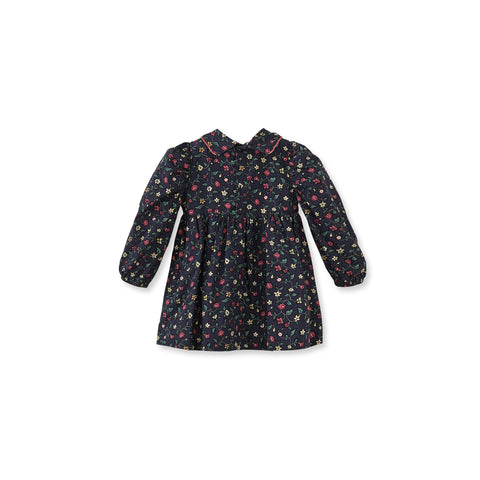 Çiçek Desenli Kadife Biyeli Lacivert Pamuk Kız Çocuk Elbise