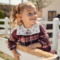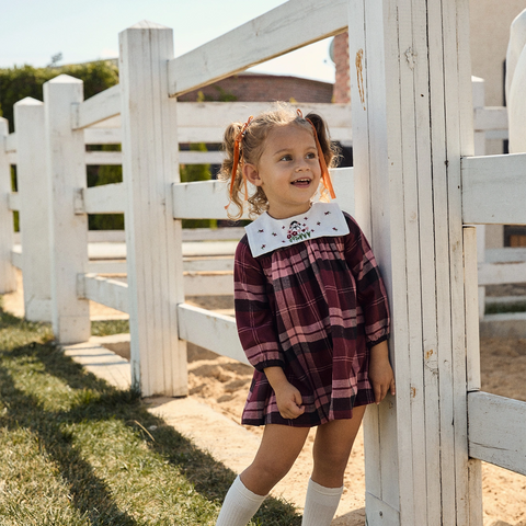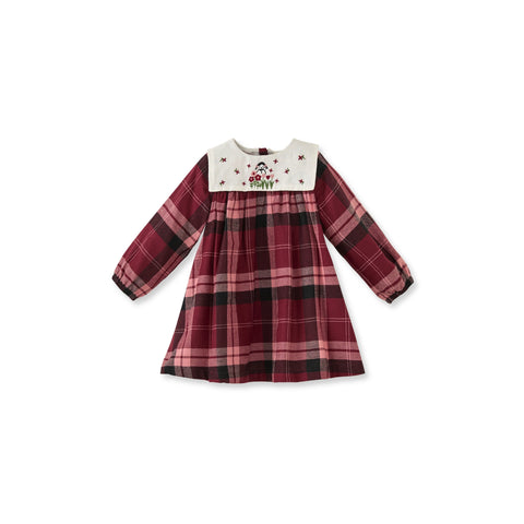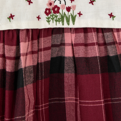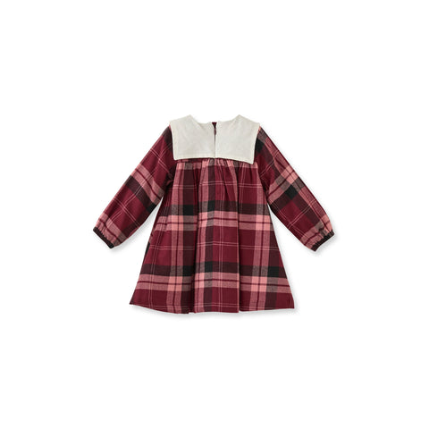 Ekose Desenli Bordo Pamuk Kız Çocuk Elbise